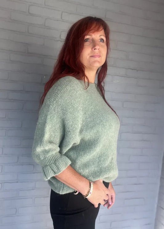 UitverkochtZachte Groene Trui met Ruffle Mouwen